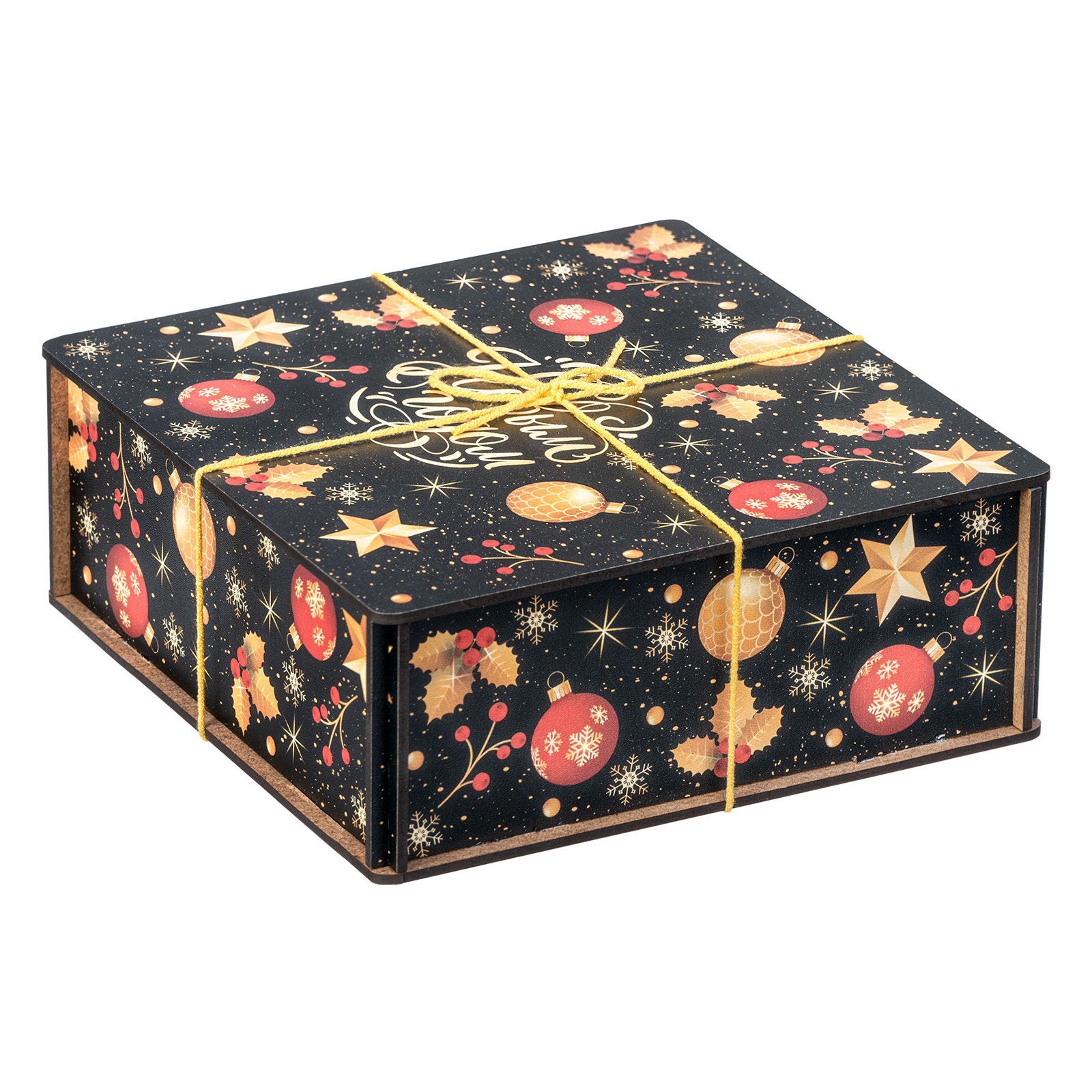“Рождественская магия” - это новогодний сладкий подарок, отличающийся довольно строгим и оригинальным дизайном. Это небольшой деревянный ящичек темного цвета, украшенный новогодними иллюстрациями и перетянутый ярко-желтой веревкой. Внутри этого ящичка бережно хранятся отборные вкусные сладости и небольшой памятный сувенир в виде лошадки - символа 2026 года. Такой подарок идеально подойдет для поздравления любого взрослого сластены: воспитателя, классного руководителя, коллеги или начальника! Такой набор гарантированно вызовет приятные эмоции у того, кто его получит.