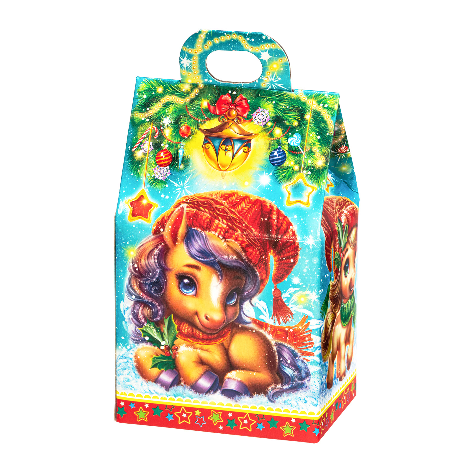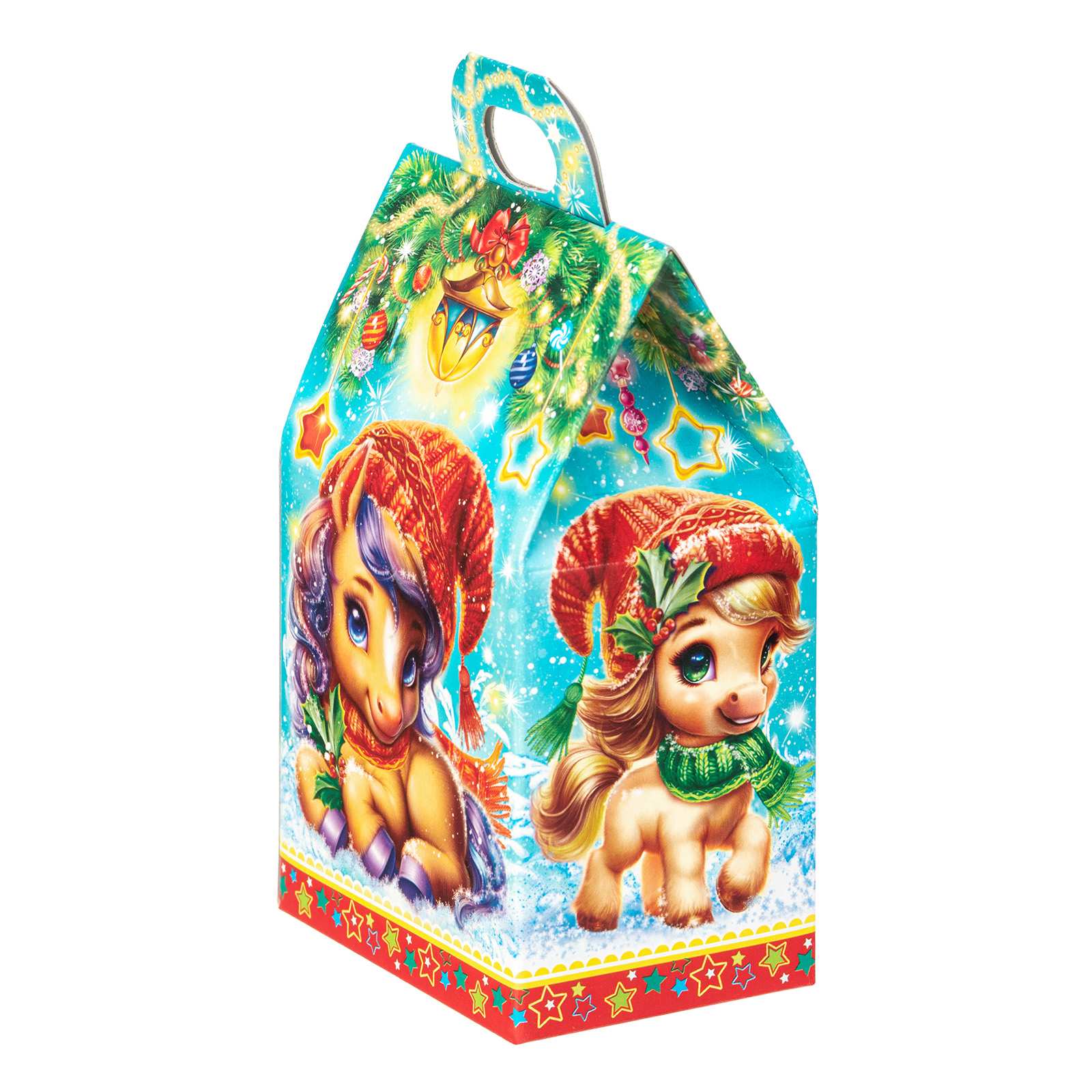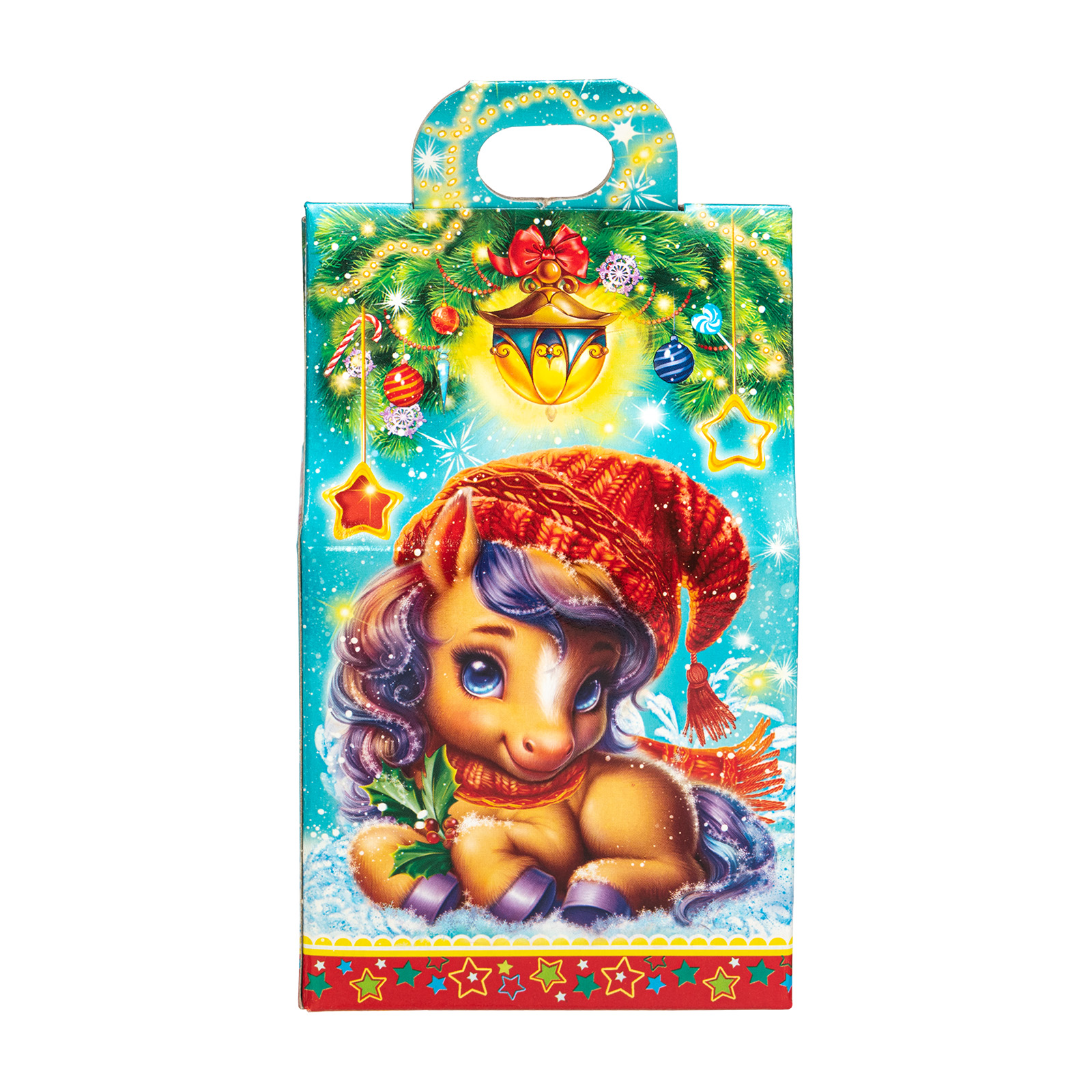 Несмотря на небольшой размер, новогодний сладкий подарок “Шалунишки” способен вызвать неподдельный восторг у маленьких сластен. В его состав входит 200 грамм разнообразных вкусных сладостей с мягкой начинкой и небольшой памятный сувенир-магнитик. Все это бережно помещено в небольшую картонную коробочку с изображением символов наступающего года - милых волшебных лошадок. Этот небольшой набор станет прекрасным выбором, если  вы ищете новогодние сладкие подарки для утренника в детском саду - малыши точно останутся довольны!