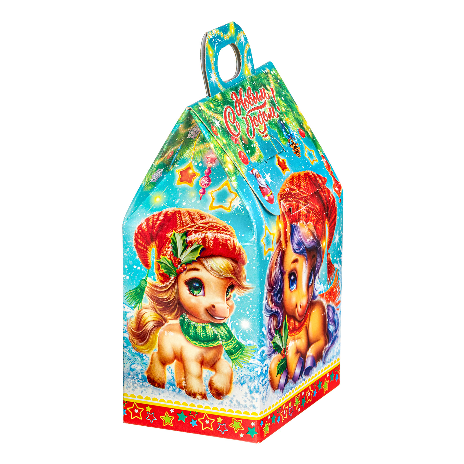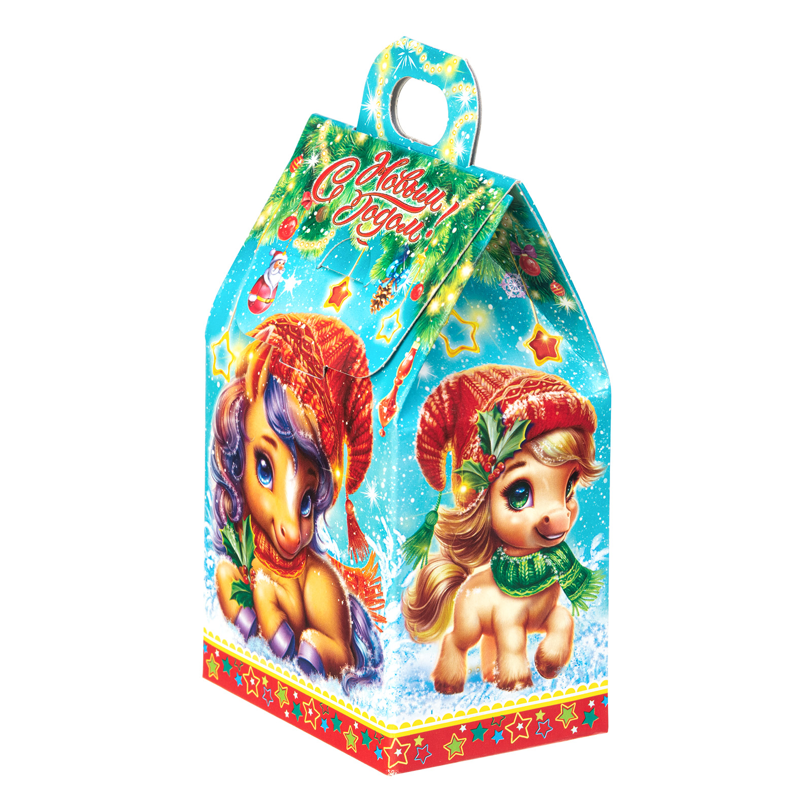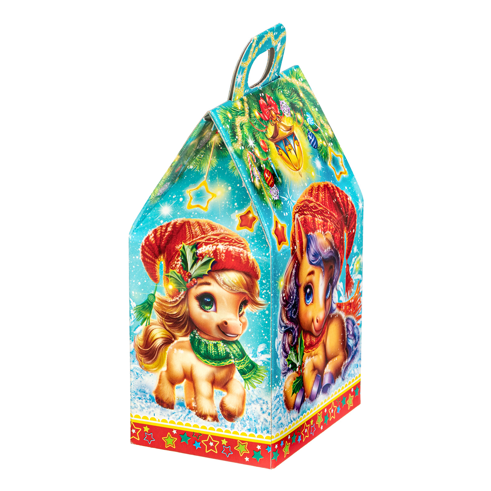 Несмотря на небольшой размер, новогодний сладкий подарок “Шалунишки” способен вызвать неподдельный восторг у маленьких сластен. В его состав входит 200 грамм разнообразных вкусных сладостей с мягкой начинкой и небольшой памятный сувенир-магнитик. Все это бережно помещено в небольшую картонную коробочку с изображением символов наступающего года - милых волшебных лошадок. Этот небольшой набор станет прекрасным выбором, если  вы ищете новогодние сладкие подарки для утренника в детском саду - малыши точно останутся довольны!